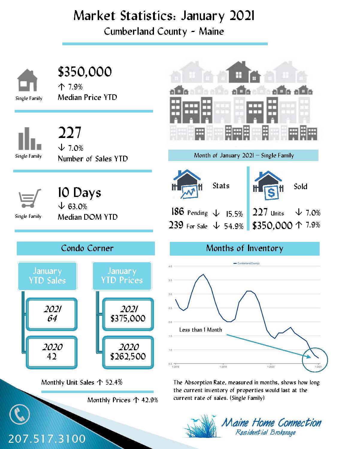 In Cumberland County, however, the inventory shortage is so critical that home sales were actually lower in January 2021 vs 2020.